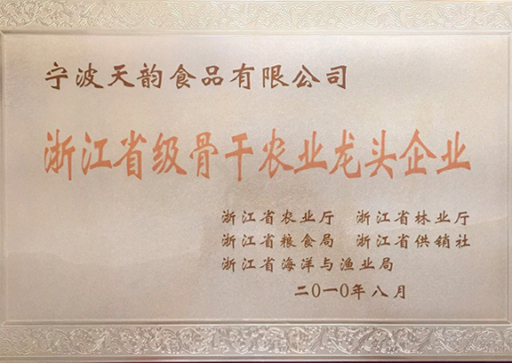 寧波天韻公司被評為農業產業化國家重點龍頭企業